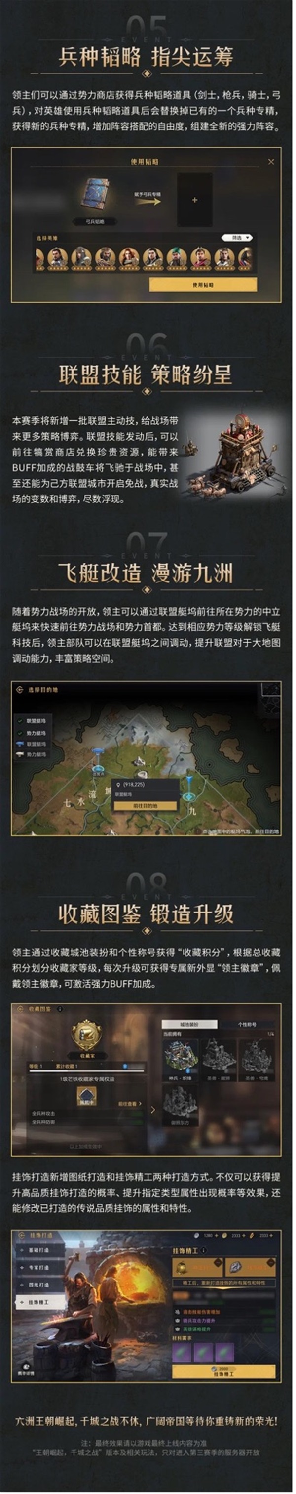通过官方爆料,我们看到除了势力玩法外,《重返帝国》还将在新赛季中推出兵种韬略、联盟技能等全新功能,相信这将战场局势带来巨大的变化。个人的武将搭配和联盟的集体对抗将迎来更多变化。