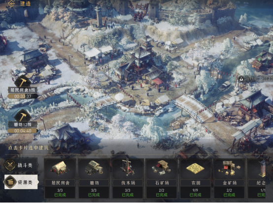 在我深度体验完《重返帝国》2天开荒期后,第一印象便是“负担减少了”。整个开荒期新手引导极短、建筑数量也较少、建筑无需等待都能快速升级,避免玩家陷入冗长的内政建造当中。