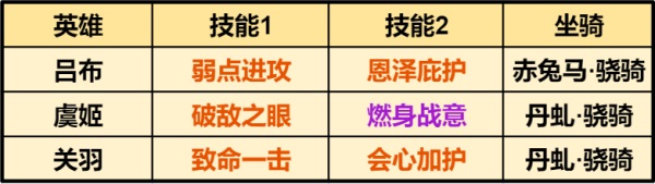 英雄阵容与无双骑完全相同,区别在于技能和坐骑。