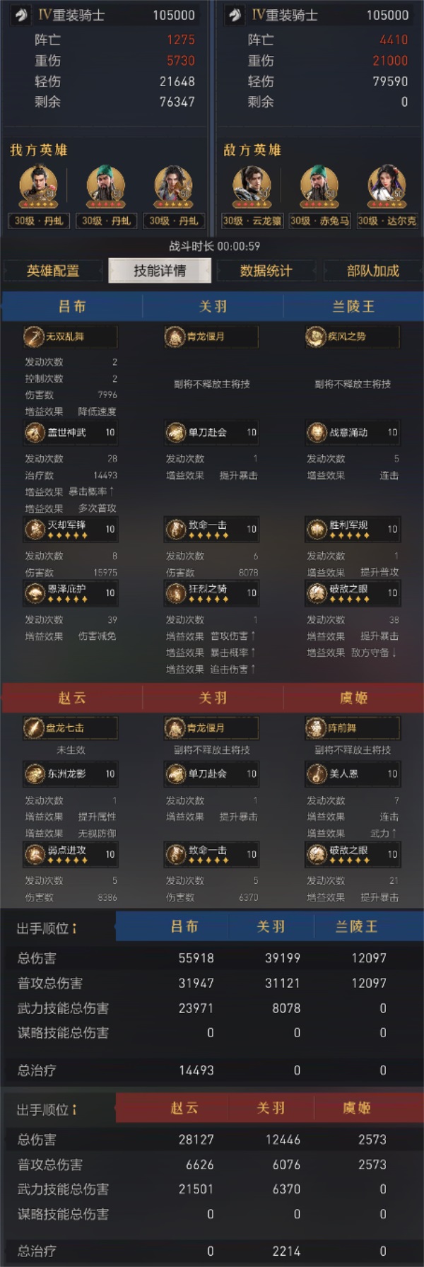 关羽三阶提升的暴击率是比较关键的节点,可有效提升吕布的被动触发频次。