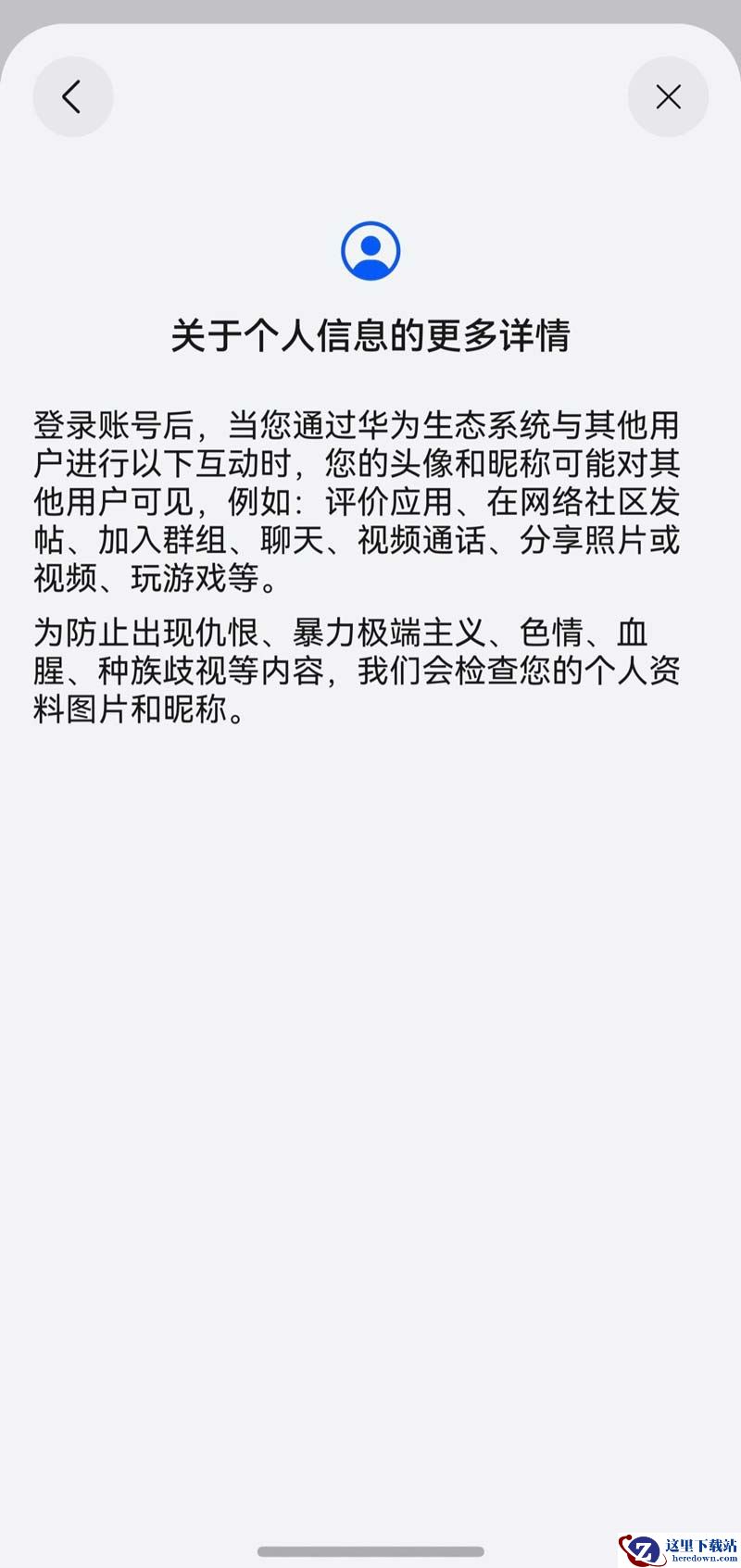 登录账号后,当您通过华为生态系统与其他用户进行以下互动时,您的头像和昵称可能对其他用户可见,例如:评价应用、在网络社区发帖、加入群组、聊天、视频通话、分享照片或视频、玩游戏等。