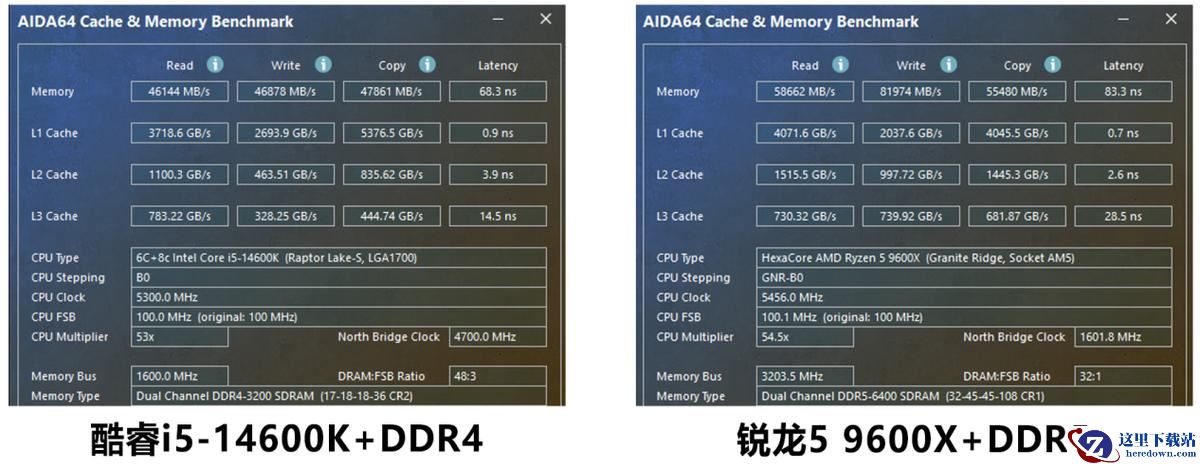 酷睿i5-14600K+DDR4平台也不是说完全没有亮点,其内存时序毕竟只有CL18,实际延迟时间为68.3ns,锐龙5 9600X搭配的DDR5内存时序则为CL32,延迟达到了83.3ns。