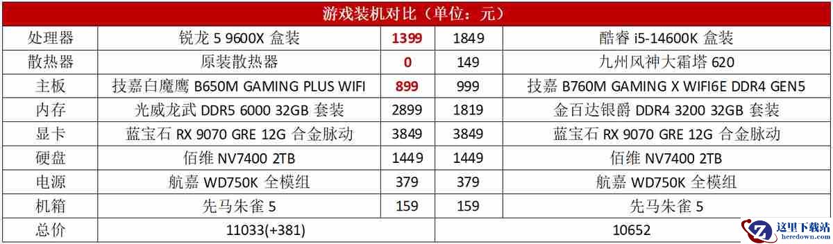 对于主流玩家来讲,游戏装机一般都会选择千元级的处理器,在很长时间内锐龙5 9600X都是同级别性价比最为突出的一款。而在近期内存价格成为影响用户硬件选择的重要因素,酷睿i5-14600KF凭借对DDR4内存的支持,似乎成为经济性更好的选择。其实选锐龙5 9600X装机成本只贵300多元,游戏性能领先15%,性价比依然领先。