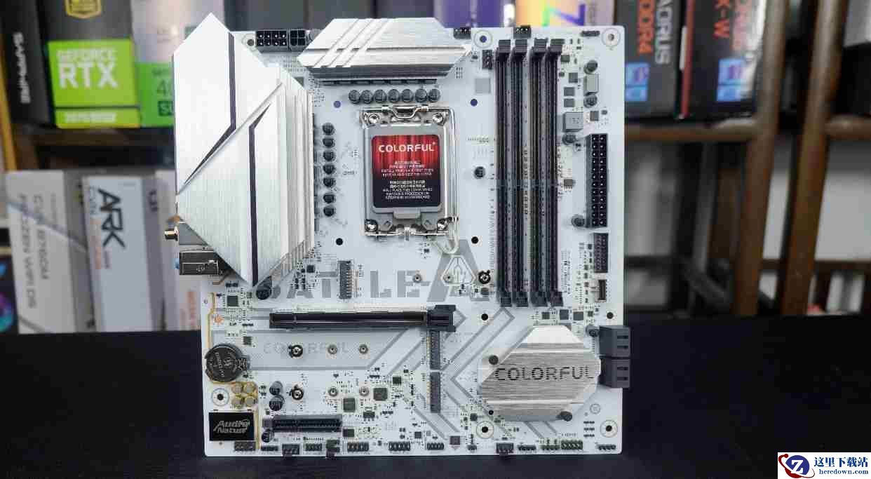 主板是白色款七彩虹B760M D4冷钢主板,主板采用了12+1+1相强化供电,核心供电使用55A高规格Dr.MoS,搭配战斧系列定制寒霜散热装甲以及全覆盖式冷凝片强化散热。主板最高支持4800MHz(OC)频率,单根内存插槽支持的最大容量是32GB,最大内存容量支持128GB。七彩虹B760M冷钢主板提供了3个PCIe 4.0 x4 M.2 SSD插槽,提供了1个PCIe 5.0 x16插槽和1个PCIe 3.0 x4插槽。后置接口提供1个USB 3.2 Gen 2 Type-C接口(10Gbps),同时搭载主流常见的Realtek 2.5G有线网卡,搭配的无线网卡为AX101 WiFi 6无线网卡,支持蓝牙5.2。售后方面则是延续了4年质保、支持个人送保服务。