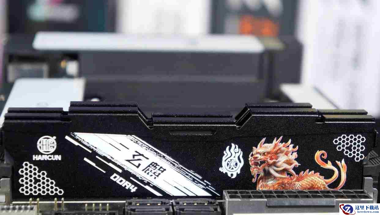 内存条搭配的是32GB套装汉存玄麒DDR4 3600马甲条,有黑白两色可选,支持个人送保。汉存玄麒DDR4 3600内存条所搭载的是海力士CJR颗粒,时序为CL16-20-20-42。汉存玄麒DDR4 3600内存条采用的是1mm厚度铝制合金散热马甲设计,搭配全新高密度3M散热胶来辅助提升散热性能。顶部采用的是凹字形设计,顶部有两处凸起的部分增大了散热马甲面积,顶部有开孔来辅助提升被动散热性能。