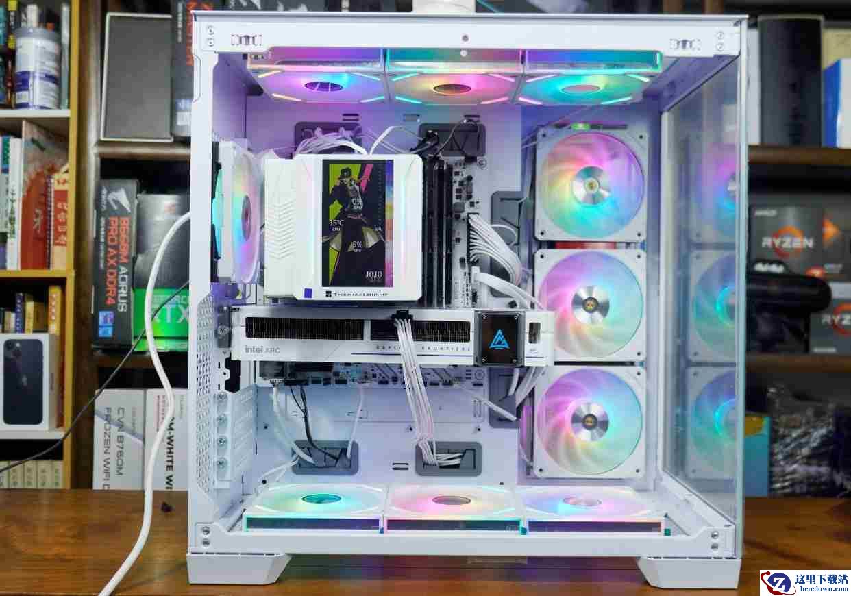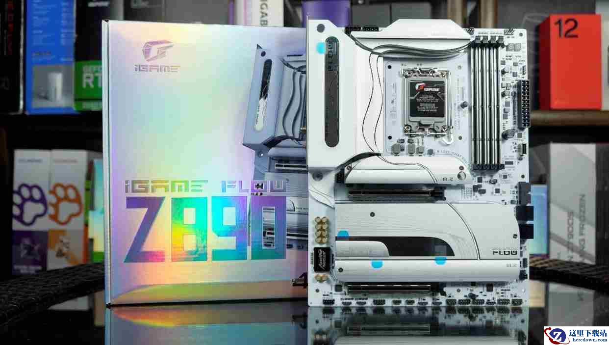 主板是七彩虹(Colorful)iGame Z890 FLOW V20,价格优势明显,硬件规格高,它采用了8层低损耗PCB以及20相核心供电+1相核显供电+1相SA供电+1相VNNAON供电的强化设计(Dr MOS 90A),搭配寒霜散热装甲和全覆盖冷凝片来确保元件在高负载状态下的稳定性。iGame Z890 FLOW V20支持双通道DDR5-9200(OC) MHz,支持的最大内存条容量是192GB。主板提供了2个USB4接口和1个支持PD3.0 @30W快充的前置USB 3.2 Gen 2x2 Type-C接口(20Gbps),同时搭载BE200 WiFi 7无线网卡,支持蓝牙5.4,另外标配一键升级BIOS功能按键和一键清除CMOS功能按键。