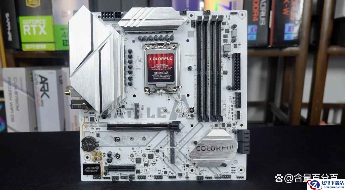 主板是白色款七彩虹B760M D4冷钢主板,主板采用了12+1+1相强化供电,核心供电使用55A高规格Dr.MoS,搭配战斧系列定制寒霜散热装甲以及全覆盖式冷凝片强化散热。主板最高支持4800MHz(OC)频率,单根内存插槽支持的最大容量是32GB,最大内存容量支持128GB。七彩虹B760M冷钢主板提供了3个PCIe 4.0 x4 M.2 SSD插槽,提供了1个PCIe 5.0 x16插槽和1个PCIe 3.0 x4插槽。后置接口提供1个USB 3.2 Gen 2 Type-C接口(10Gbps),同时搭载主流常见的Realtek 2.5G有线网卡,搭配的无线网卡为AX101 WiFi 6无线网卡,支持蓝牙5.2。售后方面则是延续了4年质保、支持个人送保服务。