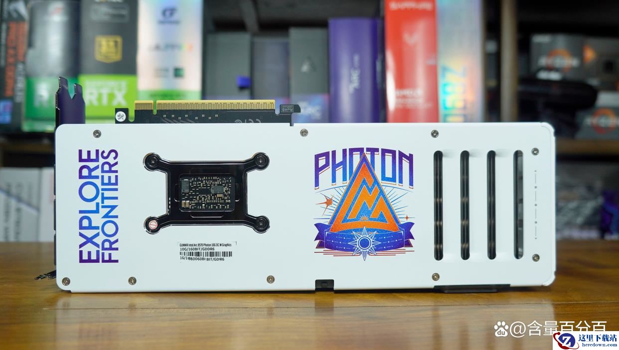 散热设计方面,蓝戟B570 Photon 10GB沿用了5根6mm镀镍散热管搭配高密度散热鳍片设计以及金属背板设计。视频输出接口方面,蓝戟B570 Photon 10GB提供了3个DP 2.1接口和1个HDMI 2.1a接口,其中第二个DP接口规格为UHBR 13.5,整体接口规格较高。