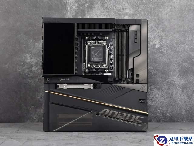 本次测试我们使用了技嘉X870E AORUS XTREME X3D AI TOP旗舰主板,这款全覆盖装甲的主板采用了顶级用料设计,拥有24+2+2相供电模组,核心供电每相采用110A SPS供电设计,同时VRM散热装甲升级了Epic VRM散热盔甲,不仅散热面积增加,还提供5英寸LCD显示屏,并且配备8+6mm双直触热管12 W/mK导热垫,可让AMD 锐龙7 9850X3D跑满全部性能。