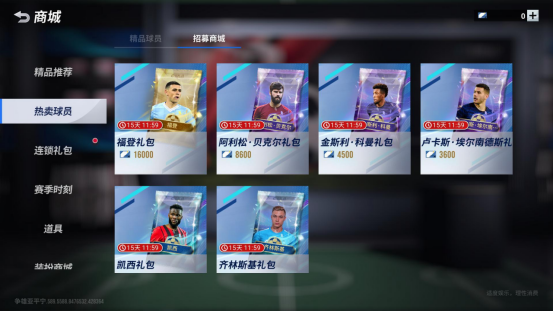 兑换商城全新开启,球队实力更上一层!10月16日-10月31日,《绿茵信仰》开启新一期兑换商城,玩家可以使用赛季合同兑换福登、阿利松、金斯利·科曼、卢卡斯·埃尔南德斯、齐林斯基和凯西。
