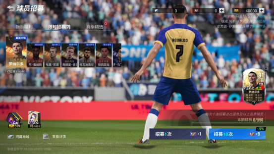 10月12日(更新后)-10月18日,最多550次(原600次)限时招募,经理们就可将罗纳尔多收入麾下。游戏内同步开启罗纳尔多培养活动,完成指定培养任务可获得「罗纳尔多-昔日荣耀」赛季时刻及大量道具奖励。