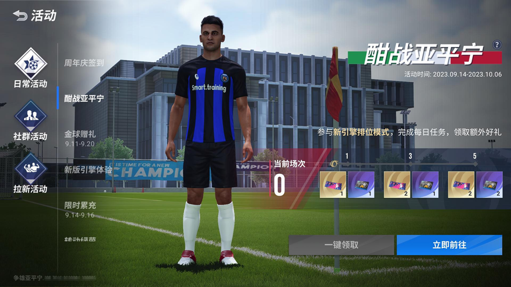 绿茵竞技,无忧尽享!9月14日更新后-10月6日03:00,《绿茵信仰》全新排位赛体验活动将会全面开放,玩家参与排位赛将获得排位赛积分保护卡等超值奖励,助您绿茵竞技酣畅淋漓!