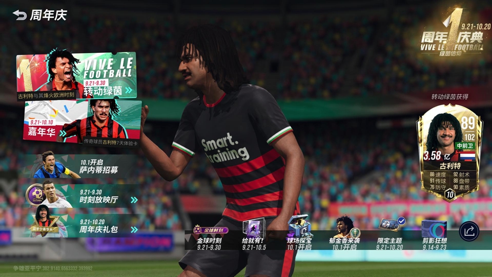 转动绿茵,庆典特启!9月21日-9月30日,《绿茵信仰》开启周年庆转动绿茵,大奖中包含「球员古利特」及「古利特-烽火欧洲」赛季时刻。