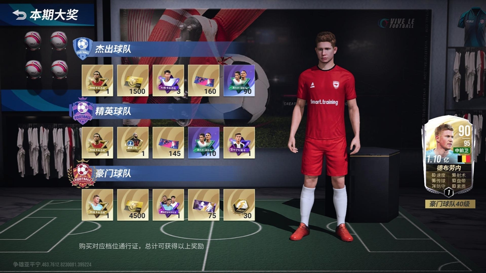 欢度周年庆,9月及10月通行证福利升级!杰出球队(免费档)加送「94金卡自选包」,豪门球队(60档)加送「95金卡自选包」,其他道具奖励同时大幅升级。
