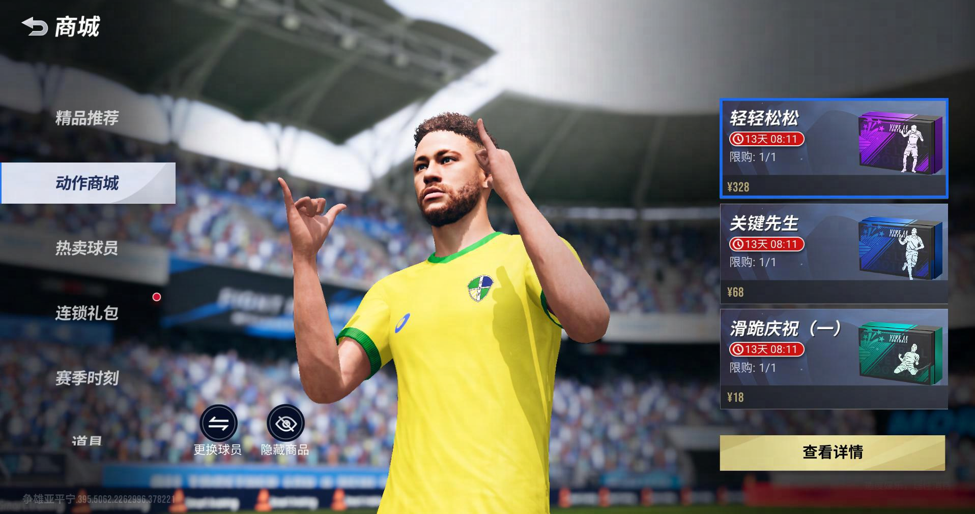 庆祝动作,限时购得!9 月 7日至 9 月 20日,玩家可前往【商城-动作商城】购买庆祝动作「经典滑跪」、「关键先生」与「轻轻松松」,9月14日至9月27日,玩家可前往【商城-动作商城】购买庆祝动作「鸦雀无声」。