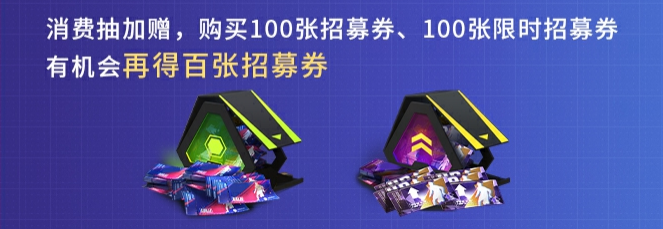 消费抽加赠,再得招募券!经理购买100张招募券、100张限时招募券还有机会再得百张招募券,让您招募无忧!