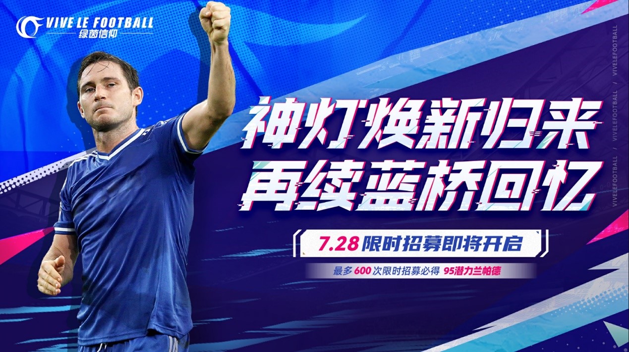 7月28日-8月3日,开启【蓝桥回忆】限时招募卡池,玩家最多只需600次限时招募必得95潜力中前卫兰帕德,让其为您照亮胜利之路。