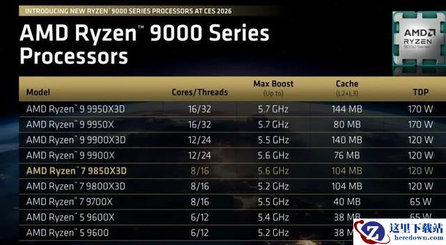 与兼顾处理器内容创作性能的锐龙9 9950X3D、锐龙9 9900X3D这些全能型产品相比,锐龙7 9850X3D的核心数量没有它们多,但锐龙7 9850X3D与锐龙7 9800X3D一样,主要是为游戏而生,所以它的售价要比锐龙9 9950X3D、锐龙9 9900X3D低不少,更适合游戏玩家选择。
