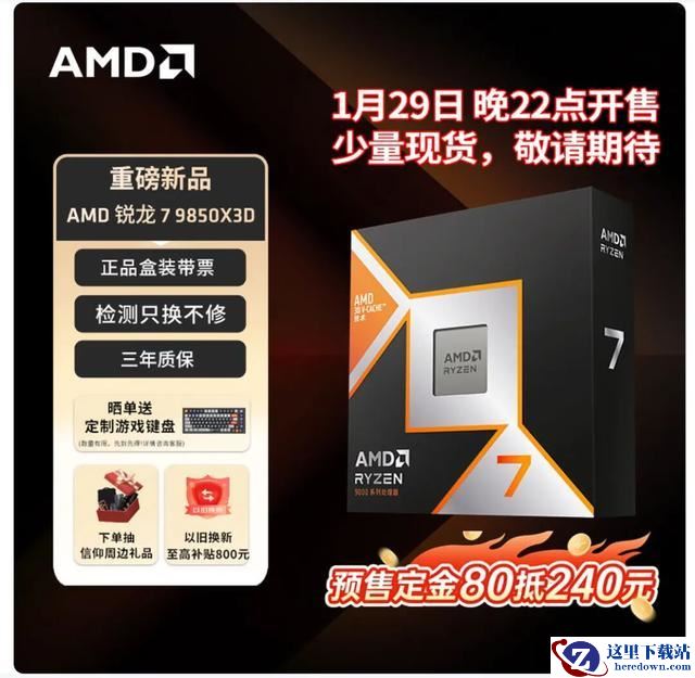 ▲AMD为锐龙7 9850X3D带来了预售定金80抵240元的活动,相当于降价160元。