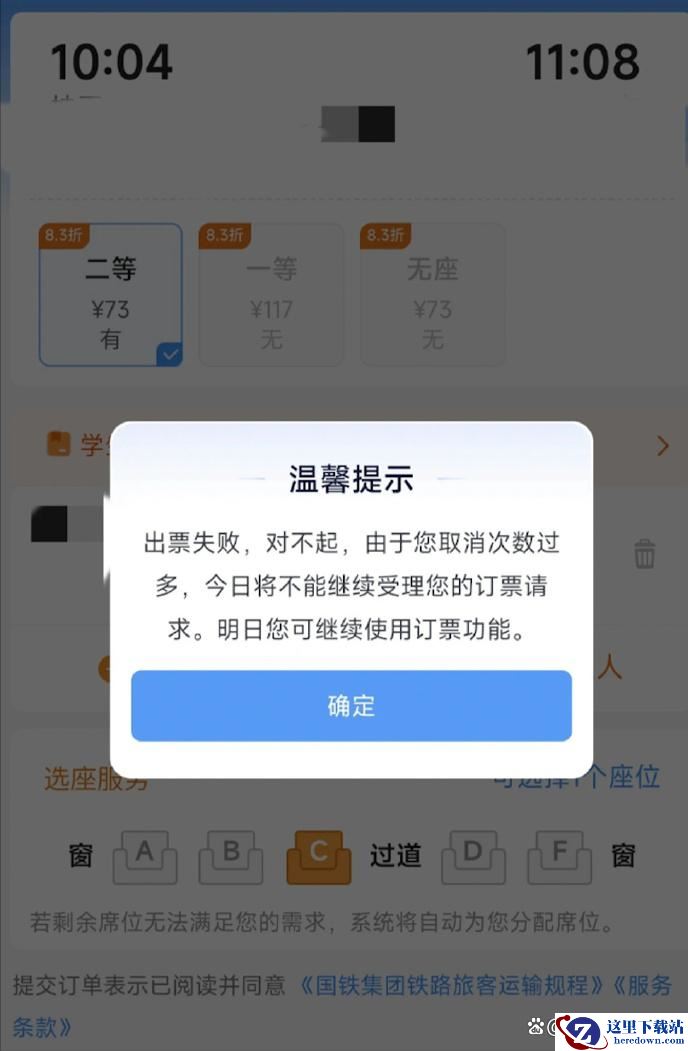 限制触发:每日在12306官网或APP累计取消订单3次(包括手动取消和支付超时自动取消),账户当日线上购票权限即被锁定。1恢复时间:锁定状态在次日零点自动解除,无需人工操作,之后可恢复正常购票。1豁免情况:因系统故障、余票显示错误等平台原因导致的取消不计入次数;无座票或选铺失败需连续取消5次才计为1次。如果你的行程临时有变,不小心点多了怎么办?12306客服给出了两条建议:亲友代购,如果情况紧急,可以请身边的亲友(非限制状态的账号)帮忙购买。