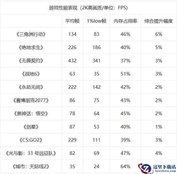 比较值得注意的是《三角洲行动》和《战地6》这两款游戏对内存容量的要求就相对比较高,内存占用率都在80%以上,甚至《三角洲行动》达到了87%,接近90%。而《城市:天际线2》作为知名“CPU压力测试”游戏,对内存容量也有很高的要求,内存占用率达到了100%,也是在我们的意料之中。