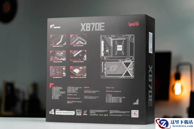 从包装来看的话,七彩虹X870E火神包装非常硕大,采用了黑色和AMD标志性的活力橙黄色,整体看上去非常高端,质感突出。