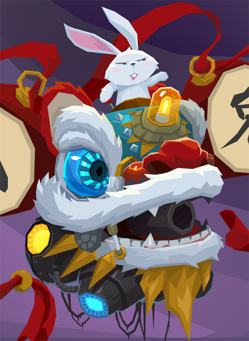 [舞狮玉兔]专属道具[醒狮大炮]:战斗开始后,在友方空位上随机衍生1只[醒狮大炮]:1费0攻2血。每当你使用英雄技能时,对随机敌方单位造成1点伤害。