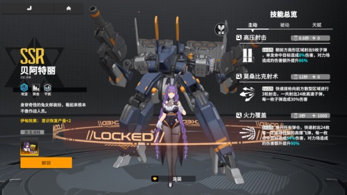 贝阿特丽有些自备,但其实她并不像她自己以为的那么弱。贝阿特丽可以多次叠加提高攻速,大招「火力覆盖」快速射出多达24枚有追踪性能的高爆飞弹,并且对力场有额外伤害。请指挥官们鼓励她自信一点,一定能在战场上发挥出色,期待她的成长吧!