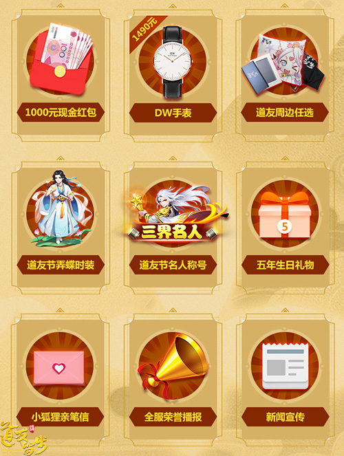 经历官方海选和全体道友玩家投票之后,三位正式玩家代言人将收获九重豪华大奖。从高价值的实物奖励到游戏内专属的称号、全服荣誉播报,从线上到线下玩家代言人都将获得丰厚的奖励。
