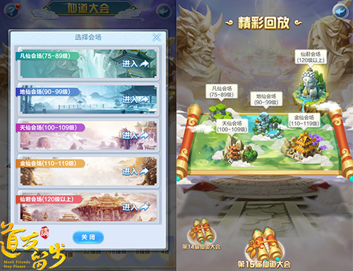 仙道大会是《道友请留步》中的跨服PVP玩法,当玩家等级达到75级以后就可以和各个服务器玩家一起同台竞技,角逐最强王者啦!仙道大会一共分为凡仙、地仙、天仙、金仙、仙君五个会场。不必担心等级压制影响比赛结果,只要开服满七天均有机会参与该玩法。还未达到参赛等级的玩家,也可以通过观看回放,及时掌握比赛的精彩瞬间。