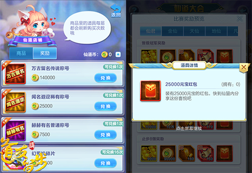 独乐乐不如众乐乐,作为2019年的第一场热血PK,不来点特殊的怎么行?本次仙道大会豪华奖励再升级,除了参与仙道玩法可以获得仙道币兑换各类稀有材料之外。晋级八强的玩家每个人都将获得额外的万元红包,只要与八强选手处于同一个仙盟就可以愉快的瓜分这万元大奖啦!
