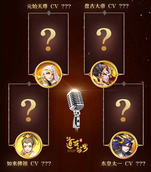 再来一个重磅消息,《道友请留步》邀请到多位国内知名的顶级声优加盟,让新资料片中的四位紫金大佬元始天尊、盘古大帝、如来佛祖、东皇太一开口发声,当你带上耳机征战三界时,将给你带来一场听觉的饕餮盛宴!那么究竟是谁让紫金四大天王发声苏力爆表,全明星阵容CV竞猜活动马上就要开始,你准备好了吗?