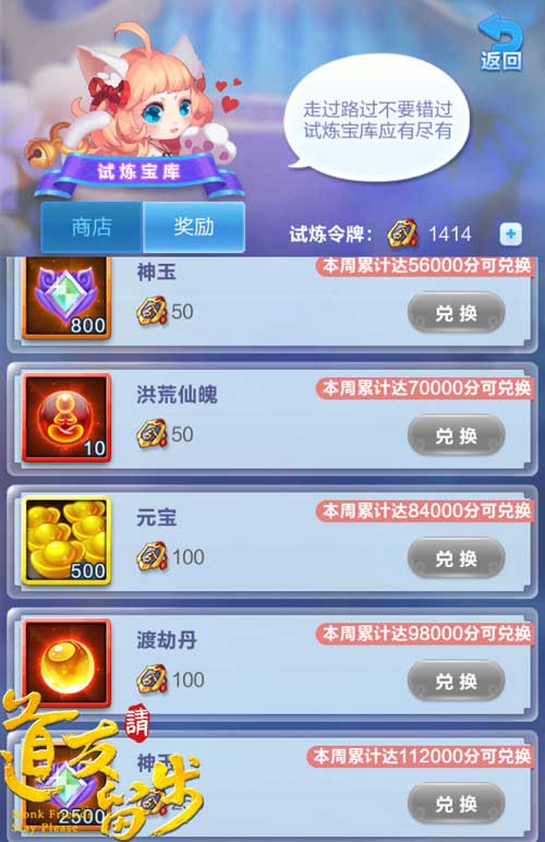由于“群仙试炼”玩法具备一定的难度,即使试炼挑战失败的玩家也不用担心,同样有丰厚的奖励等待领取。每次挑战结束后,玩家都将获得一定的试炼积分。试炼积分达到一定程度,即可在试炼宝库中兑换稀有奖励。