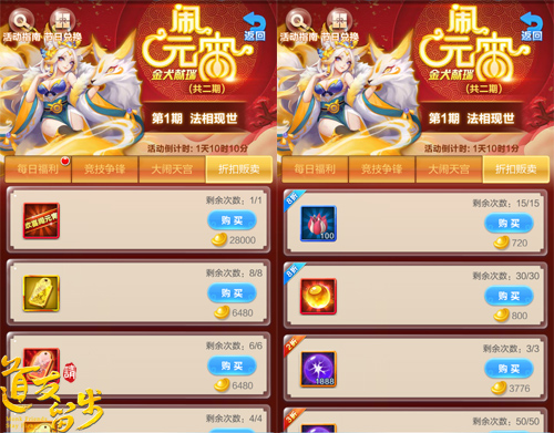 如果说学习工作太忙,没有时间完成主题活动的话,也不用担心。元宵节期间,各位道友可以直接使用元宝购买各种超低折扣的物资。之前登录送元宝活动中囤起来的金元宝,是时候把握机会花一波了,缺什么买什么,最低低至2折的折扣价,买啥都是买得划算。