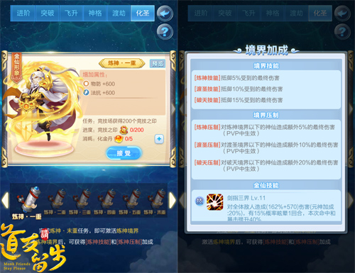 既神仙化圣系统与玩家见面后,战力飞升的畅爽感觉和颜值爆表的全新形象已经让大部分玩家们不再满足于每个种族仅有三个红色神仙拥有化圣资格的体验了。本次《道友请留步》响应各位玩家的需求,开放了所有橙色神仙的化圣资格。小编已经预感到,一场新的战力大比拼即将打开帷幕。