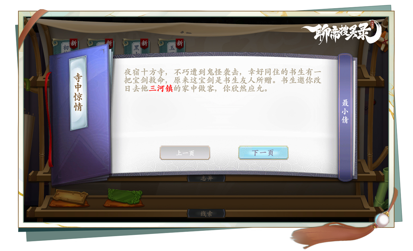 为了更加深刻地诠释每位异灵的故事,特意在游戏中设立了“书箱”,这里记录着游历中解锁的秘闻故事,其中有梅女在遇到留仙先生之前被诬陷的悲惨遭遇,画壁与山市之主的纠葛,更有婴宁和王子服的爱情故事!