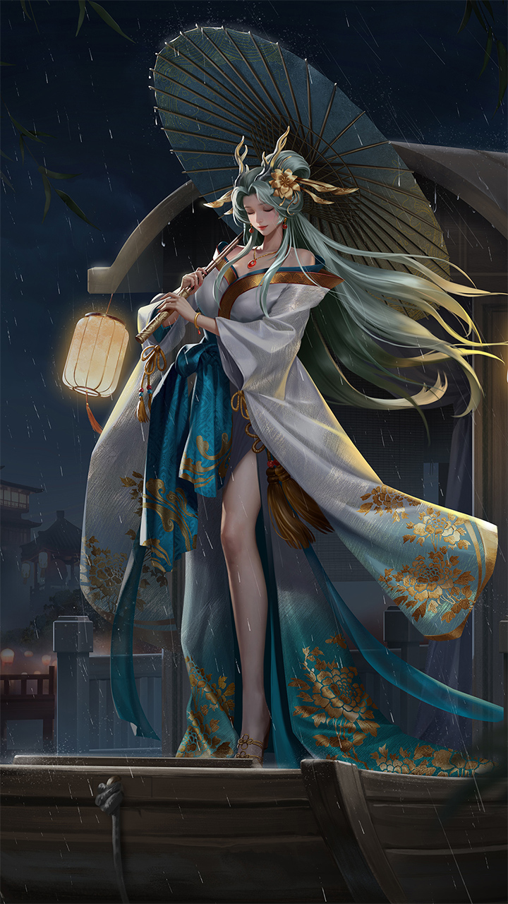 亘古之忆·龙女的新皮肤「雨师」上架,夜幕低垂,细雨蒙蒙,她伫立船头,长发如瀑布般倾泻而下,手中精致的油纸伞轻轻摇曳,仿佛在与夜风共舞,犹如一幅不染尘烟的画卷,美不胜收。