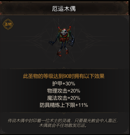 全新圣物-厄运木偶登场!传说在厄运木偶中封印着一位术士的灵魂,只要晨光教会中的人靠近,木偶就会不住地散发出厄运。
