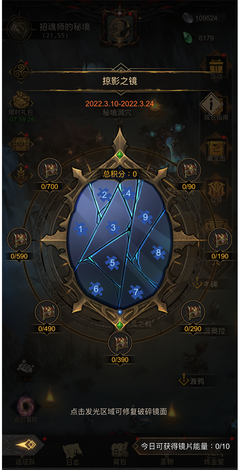 新地图、新BOSS有了,当然少不了福利满满的新活动!内含海量宝箱的失落圣器掠影之镜降落阿罗亚大陆,可惜镜面已经破碎,需要招魂师进行修复。