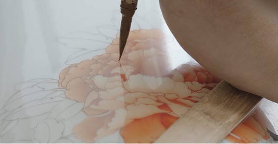墨彩描金,其原理是用蘸有纯金粉的笔对瓷器的花纹加以描绘装饰,被描上金边之后的玉质感瓷器则会再多一分华丽、富贵的观感。这个起源自北宋时期的古老技艺,到清末已濒于失传。在今天,已经是我国的非遗工艺之一。