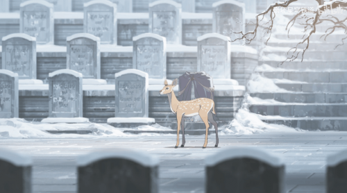 在「那安息的长夜」这部短片中,遐蝶曾亲手为一头临终的老鹿送上死亡,也曾送走了一直称其为“遐蝶姐姐”的玩伴。尤其在送别这位玩伴时,遐蝶第一次能够肆无忌惮地拥抱他人,这样刻骨铭心的经历也让她在那位玩伴的墓前感伤许久。但在她离开后,一头小鹿的出现,却也为屏幕前的观众揭示了更为深层的意义:死亡是离别,亦是新生。