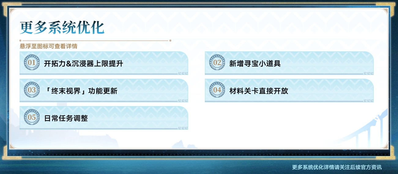 以上就是为大家带来的3.0版本福利及优化相关情报,还有新角色及地图场景等更多精彩内容等各位开拓者前往游戏内体验。全新银河冒险之旅即将开启,期待大家能在游戏内留下独一无二的开拓记忆。