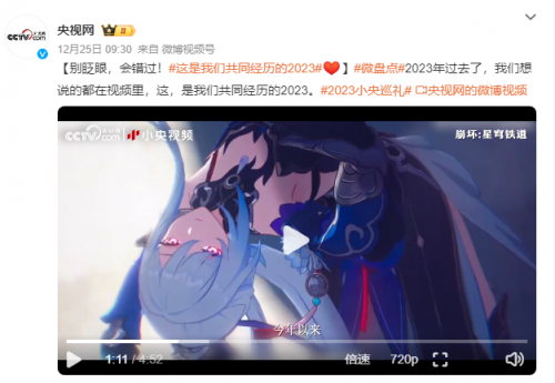 本周,央视网在微博上放出了一段2023年的回顾视频,除了时政热点外,最令玩家们瞩目的便是视频中出现的游戏片段了。