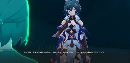 而最让我印象深刻的,则是其中的一个支线“贯月槎”。这个任务中,玩家将会顺着一架“幽灵飞船”的踪迹,找到曾在1.2版本中出过场的角色“驭空”,和她一起面对由鬼魂化成的挚友“采翼”,并最终放下过去,和那段伤心的过往做一个彻底的了结。