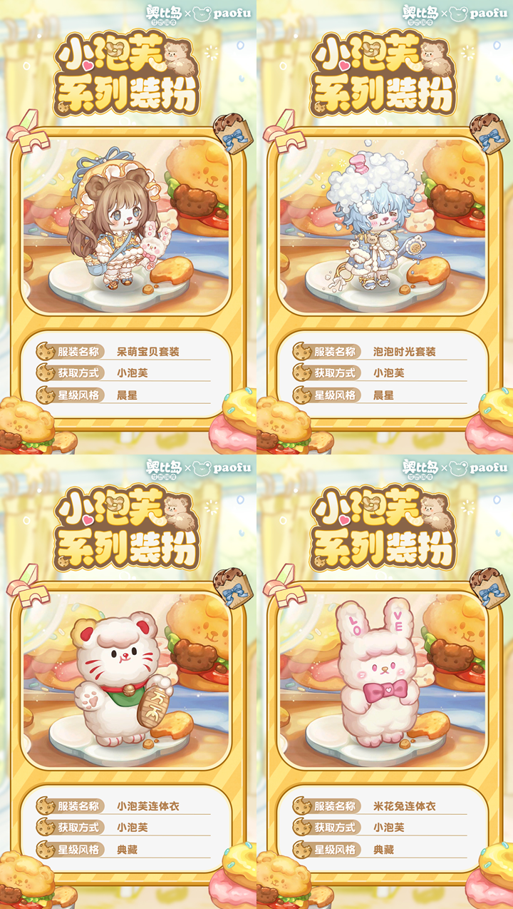 开卡盒集卡领取「小泡芙」限定装扮,熊熊联萌,可爱加倍!快和小泡芙一起享受甜蜜爆表的时光!