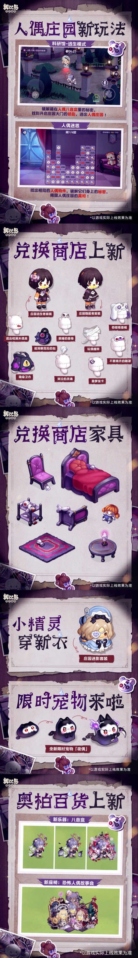 3.4「人偶庄园」版本正式开启!科研馆全新逃生模式、人偶主题祈愿服装&家具、塔罗系列奥比生活、全新限时宠物「夜偶」等超多精彩内容即将上线,快戳下方图片查看本期前瞻,新版本爆料一网打尽!