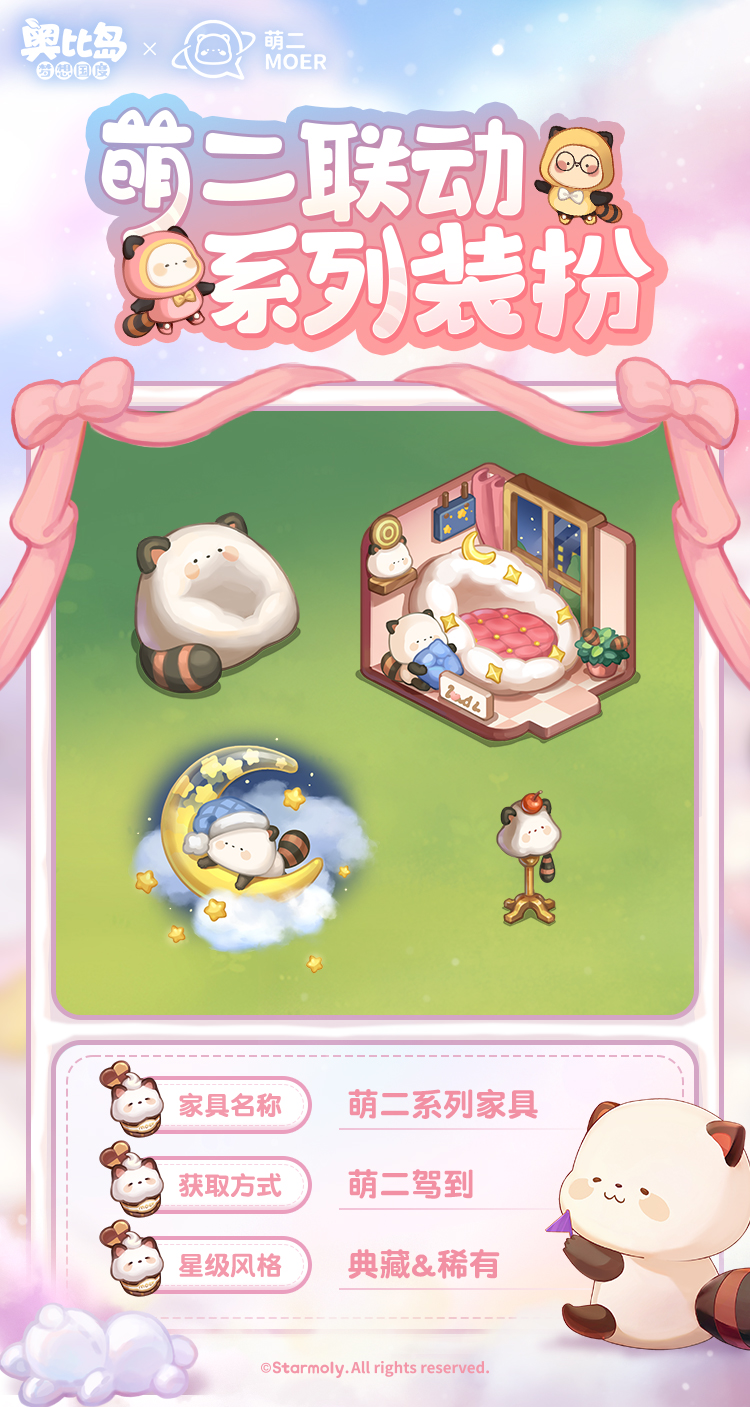 熊熊联萌,萌力全开!超人气表情包小巨星——萌二,要来奥比岛开启巡游签名会啦!为了回馈小奥比们的热情,萌二精心挑选了一系列超Q的精致写真,就等你来珍藏这份萌动! 收集「萌二」写真,领取限定装扮「萌二甜梦套装」「萌六睡意套装」、背景卡「萌二云端卧室」等萌趣装扮和家具!