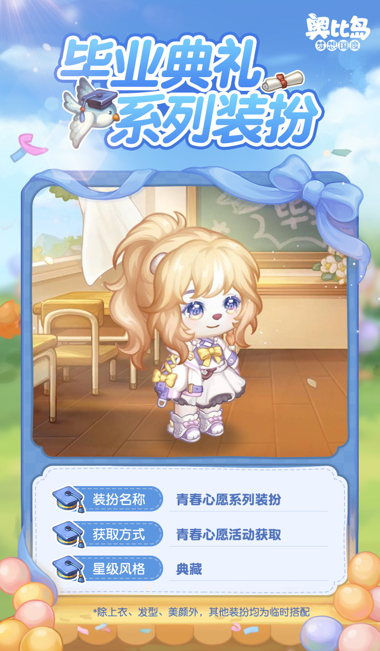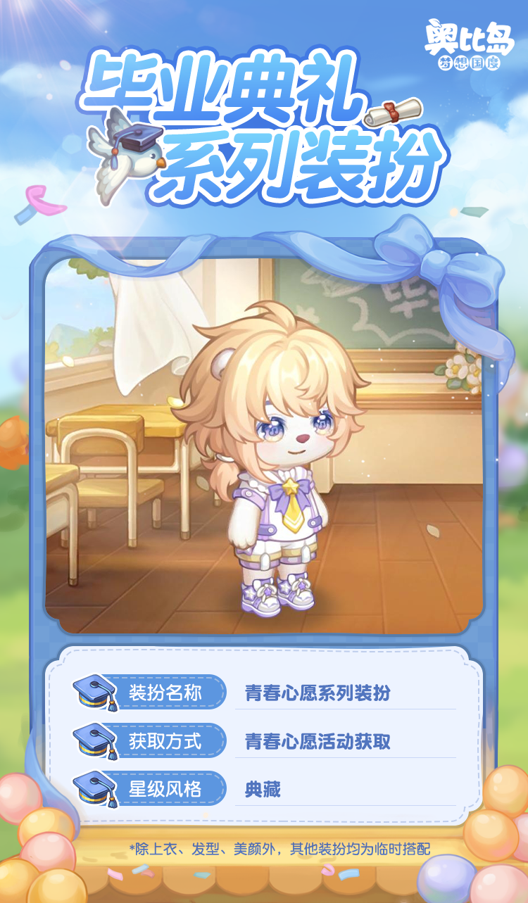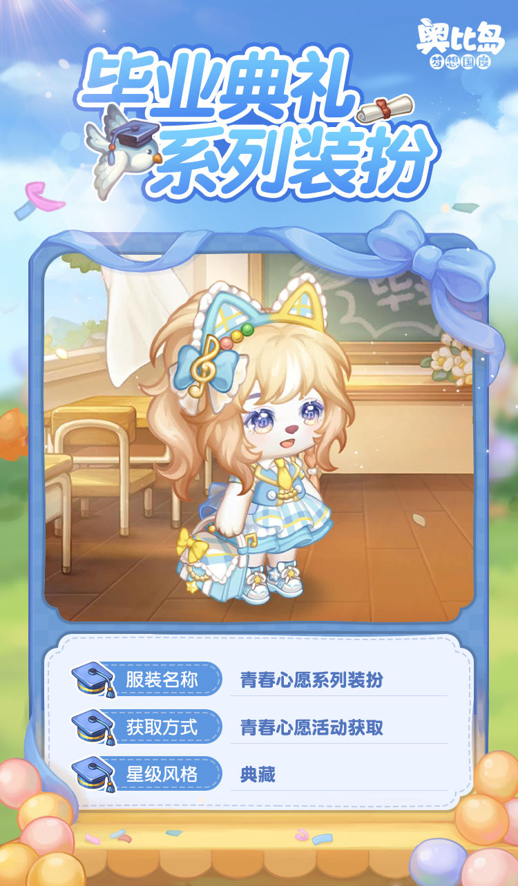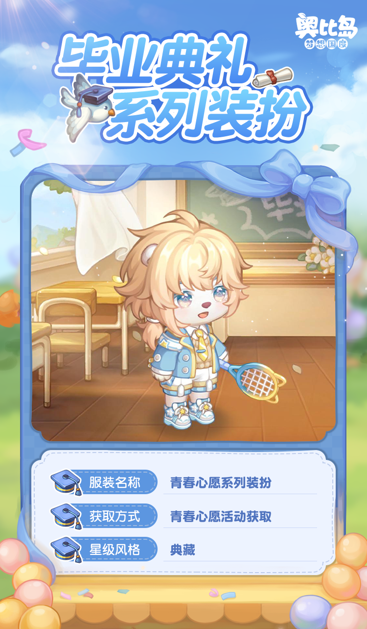 奥比岛手游「毕业典礼」活动已开启,现在下载奥比岛手游,许下「青春心愿」,获取充满青春活力的限定装扮吧!还有各种满载着快乐和回忆的校园纪念品主题时装、家具等你解锁,还有丰厚奖励等你领取!
