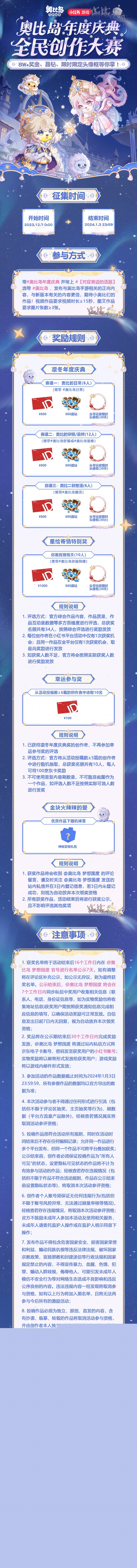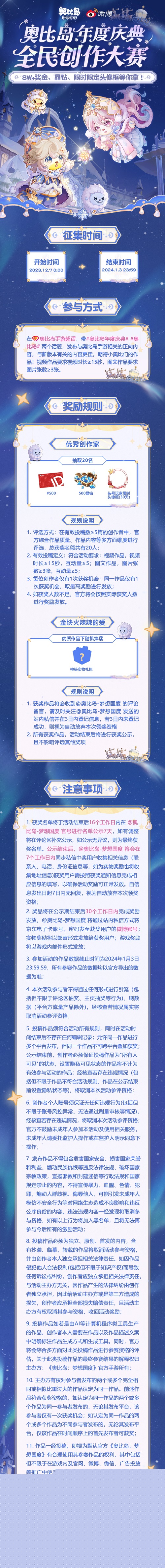 本次「奥比岛年度庆典」全民创作大赛将在微博、小红书、抖音和B站四大平台同时启动,每个平台都准备了丰富的奖励,快来把它们抱回家吧。
