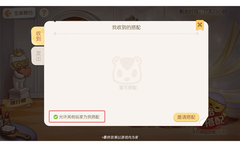 该玩法每期均为限时开启,详情请留意活动公告内容。如果不希望其他玩家为自己搭配,可以在【我的搭配】中关闭【允许其他玩家为我搭配】。